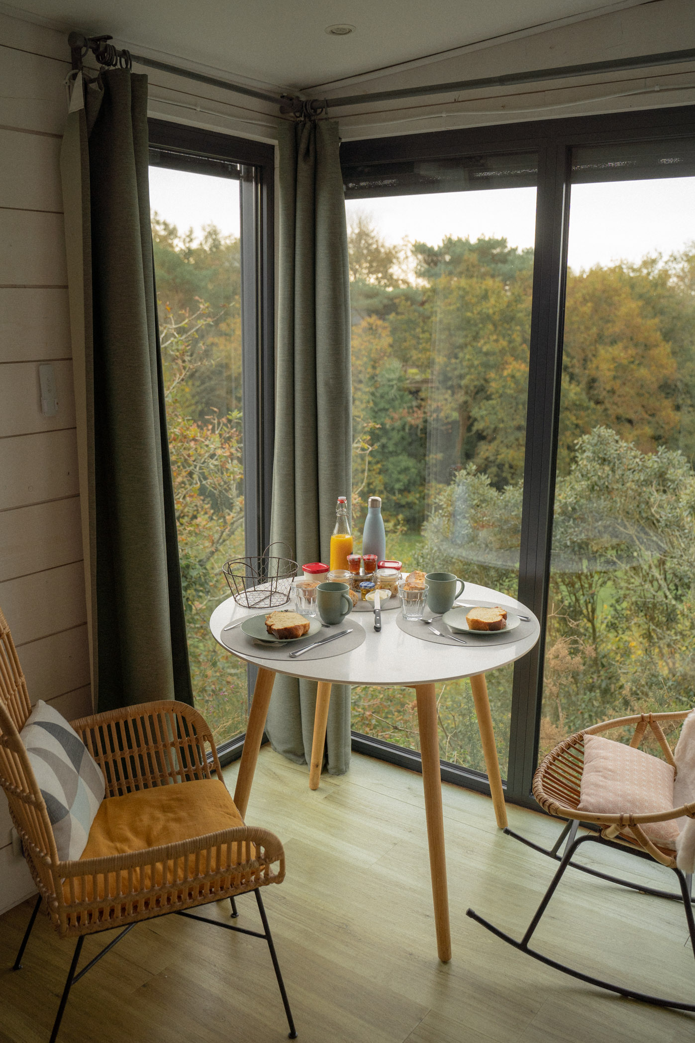 Nichés à flanc de falaise, entre forêt et lumière océanique, nos trois cabanes ont été pensées comme des refuges contemporains ouverts sur la nature. Ils s’intègrent pleinement au paysage naturel de Pont-Aven et permettent de vivre un séjour hors du temps.