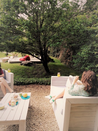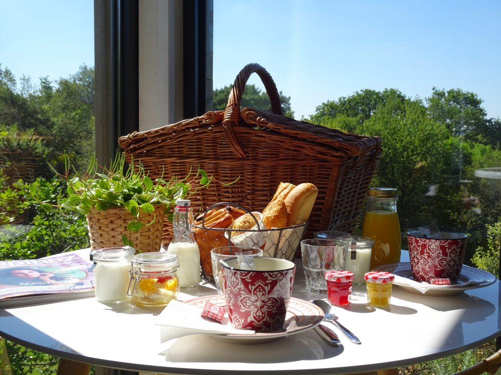 Petit-déjeuners servis dans vos cabanes dans un panier accroché à l’extérieur.
